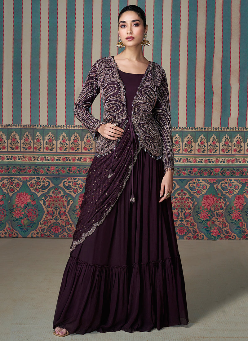 - Description: Jacket-style wedding Anarkali gowns are good options only for winter marriages or formal evening looks as the long jacket will provide a regal look with layered.