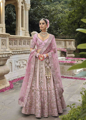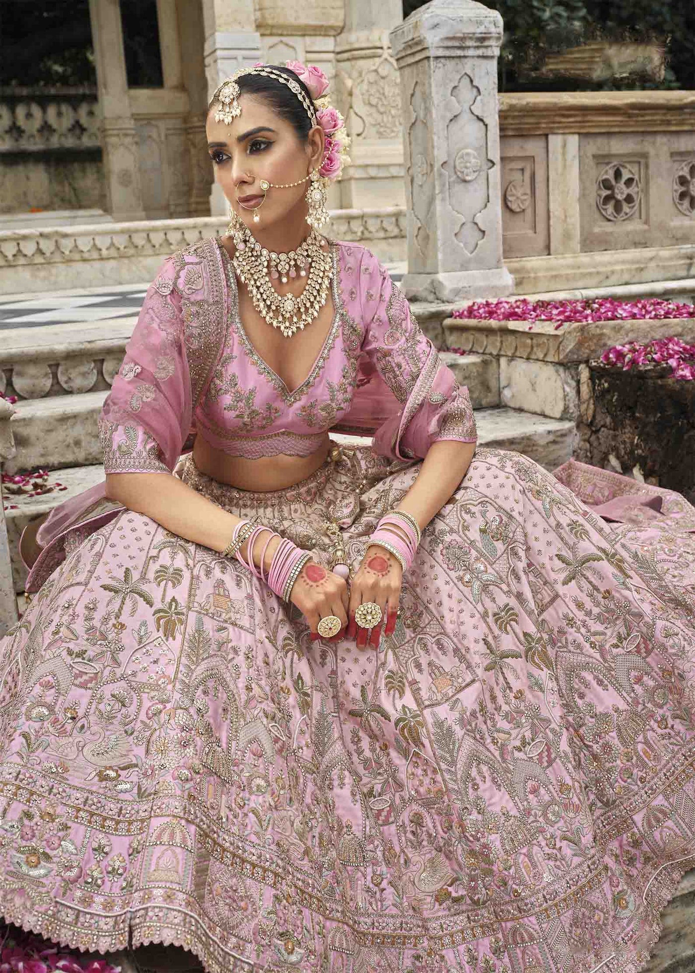 Baby Pink Graceful Embroidered Bridal Silk Lehenga Sale