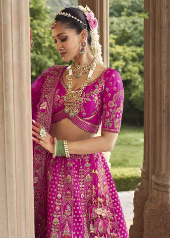 Purple Grand Embroidered Bridal Silk Lehenga – an enchanting masterpiece that exudes regal sophistication and timeless charm. Designed for the bride who wishes to make a statement of grace and grandeur, this lehenga beautifully merges traditional craftsmanship with royal allure. The deep purple hue symbolizes elegance and power, while intricate khatli embroidery and exquisite handwork elevate its luxurious appeal. Crafted from heavy bridal silk, it’s paired with a richly embellished silk blouse and a delicately embroidered net dupatta that adds a touch of ethereal beauty.