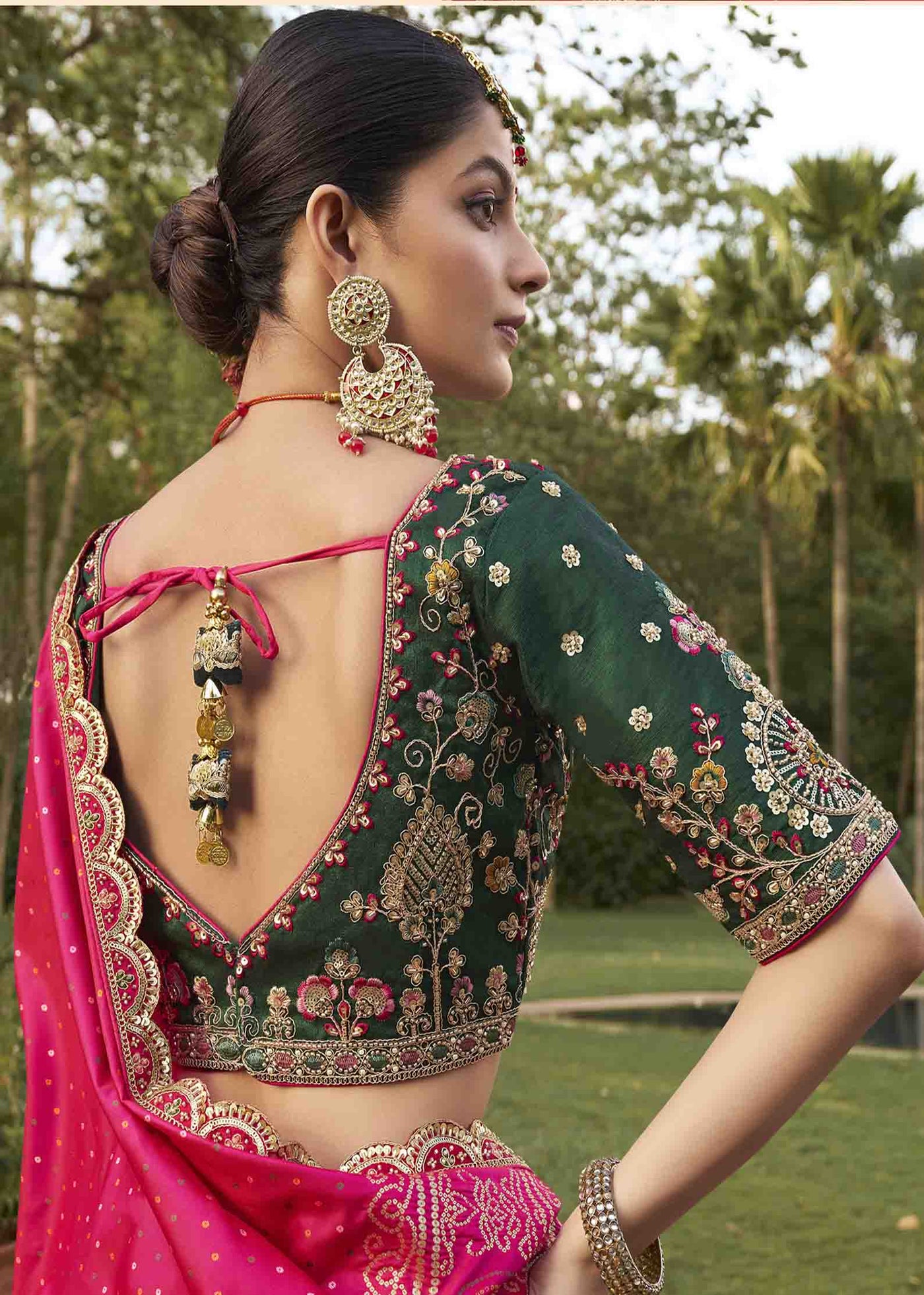 Green Pink Royal Zarkan Banarasi Silk Lehenga Sale