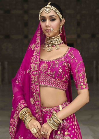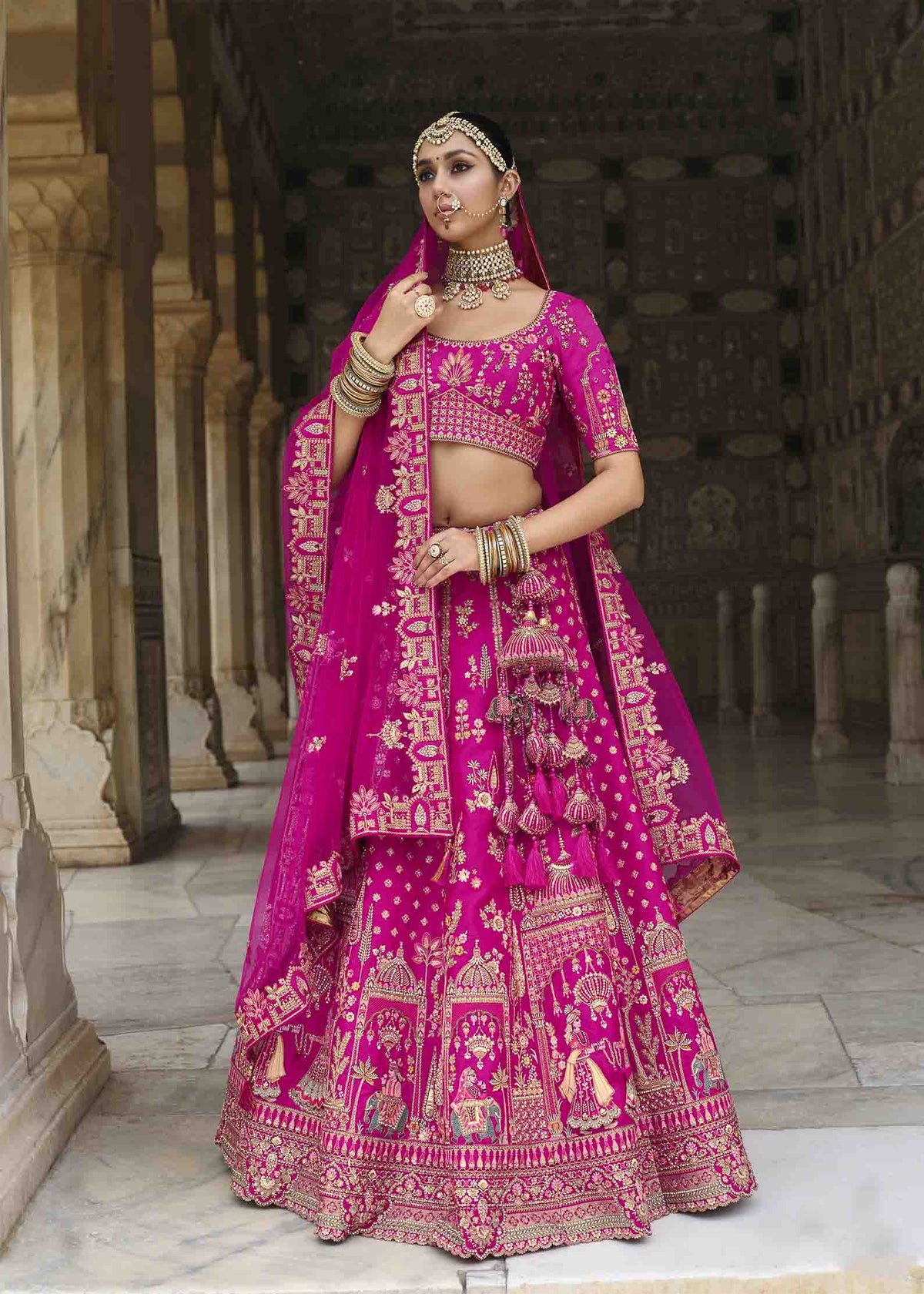 Pink Elegant Embroidered Bridal Silk Lehenga Sale