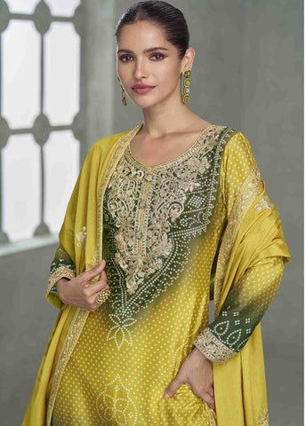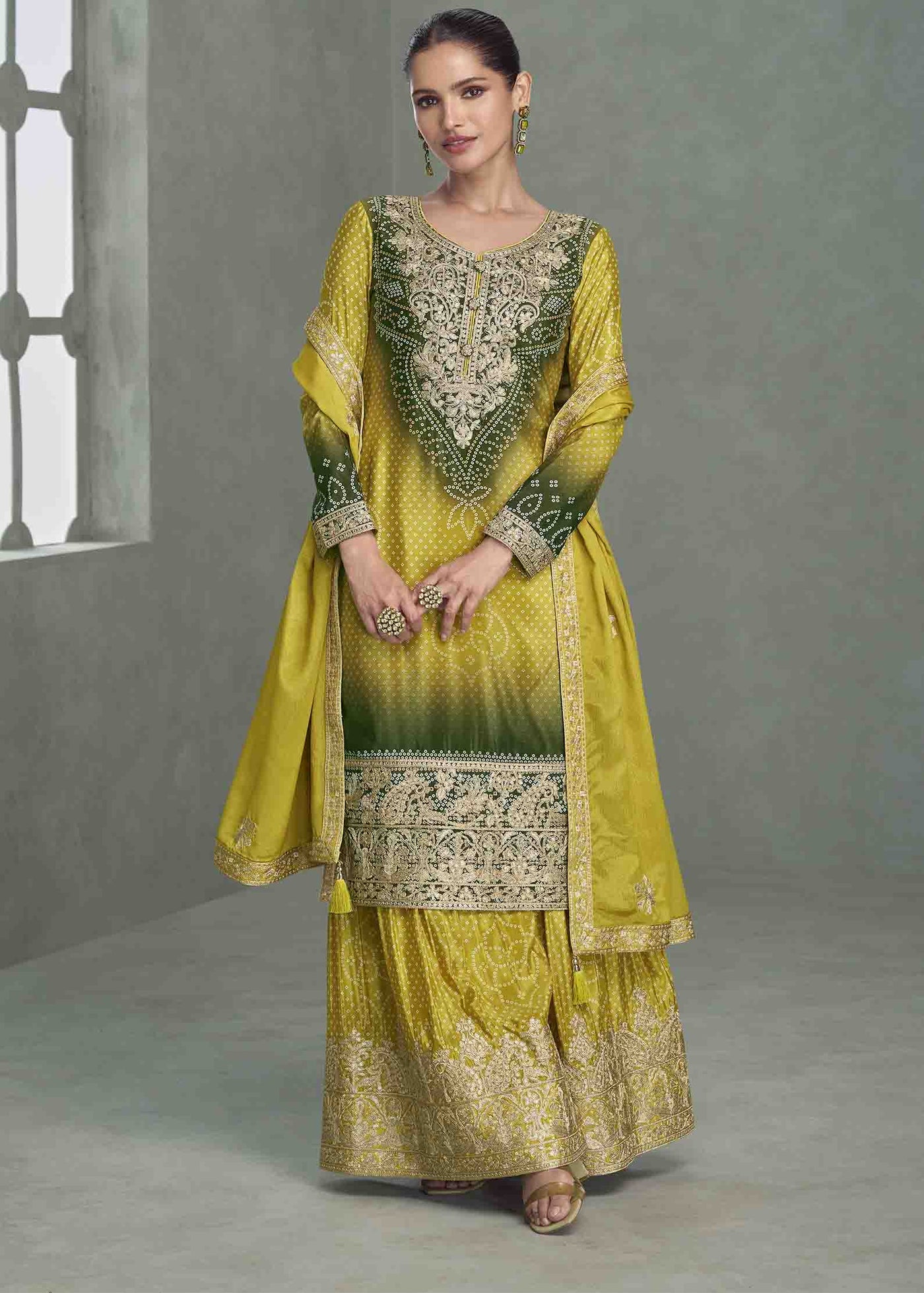 Yellow Radiant Chinnon Silk Plazzo Suit Sale