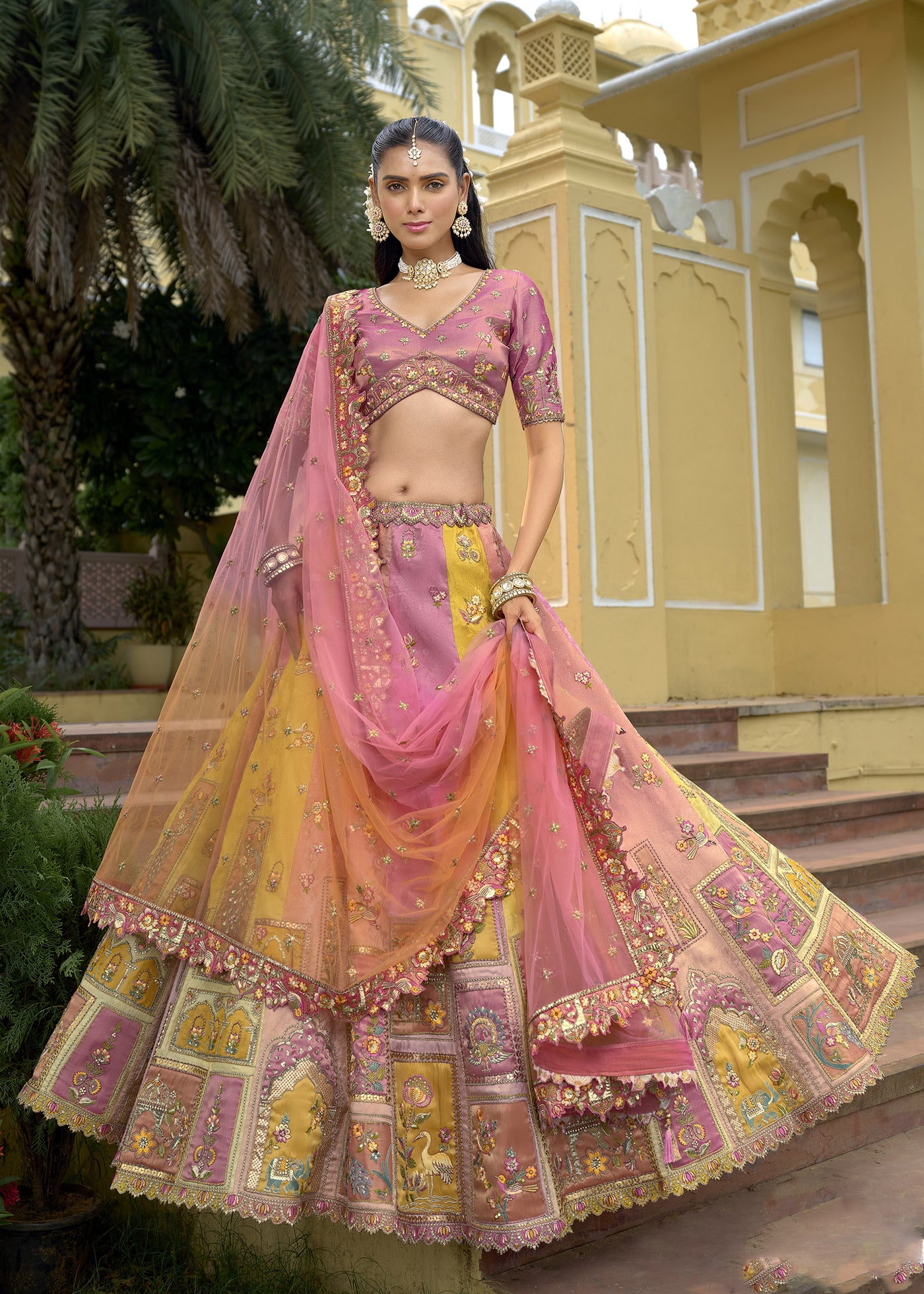 - Includes a silk lehenga, a finely crafted blouse, and a matching net dupatta