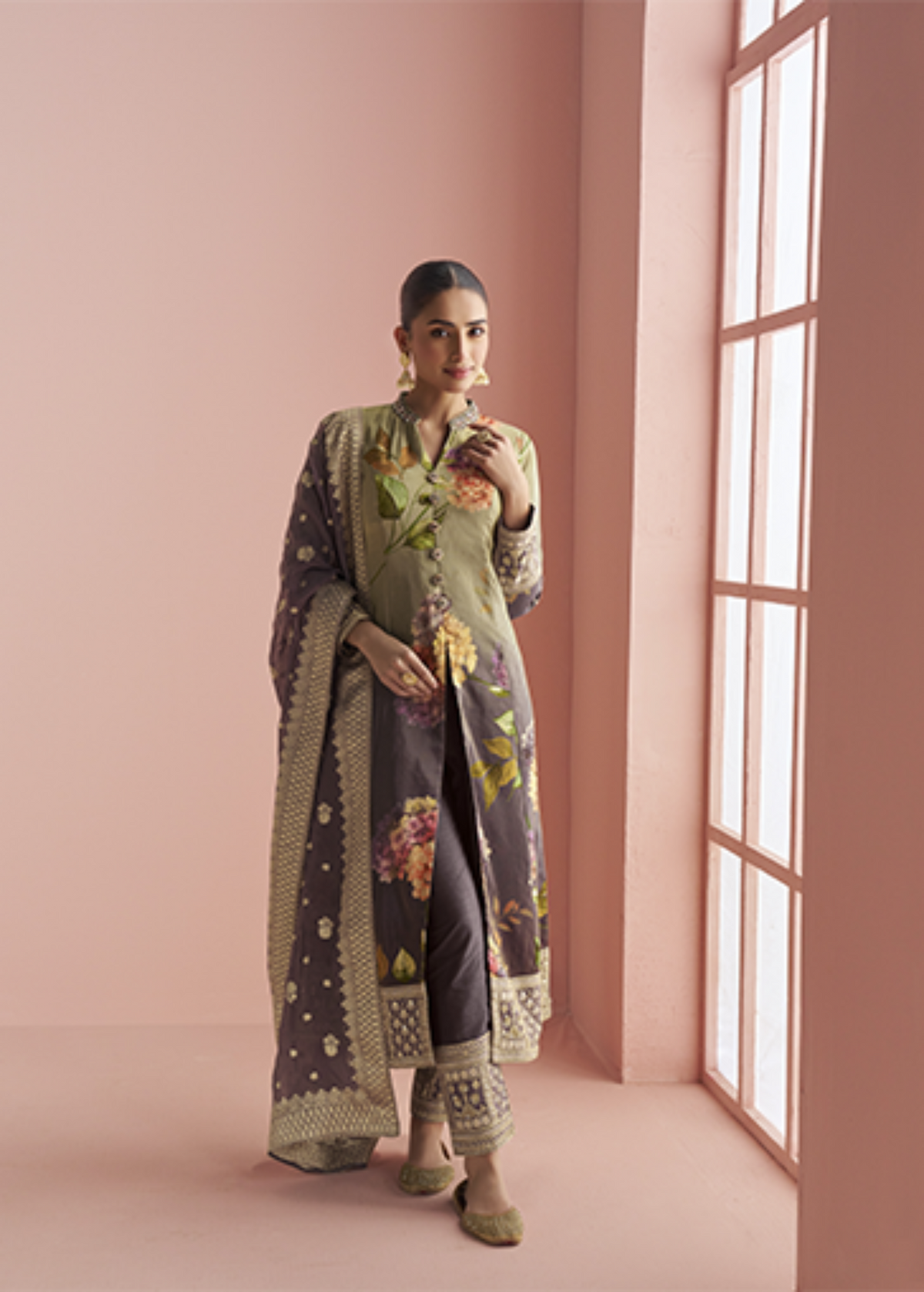 Olive Premium Silk Front Cut Pant Style Suit – radiate effortless elegance in this thoughtfully designed piece from the Designer Elegance Collection. Crafted from luxurious real premium silk, this outfit features a stylish front-cut embroidered top paired with beautifully embroidered pants and a rich jacquard dupatta. The deep olive hue exudes understated sophistication, while the fine embroidery and smooth silk texture create a perfect harmony of tradition and modern design. The ensemble’s timeless silhouette and detailed craftsmanship make it a statement of grace and confidence for any special occasion.