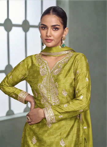 Lime Green Bandhani Print Embroidered Sharara Suit Sale