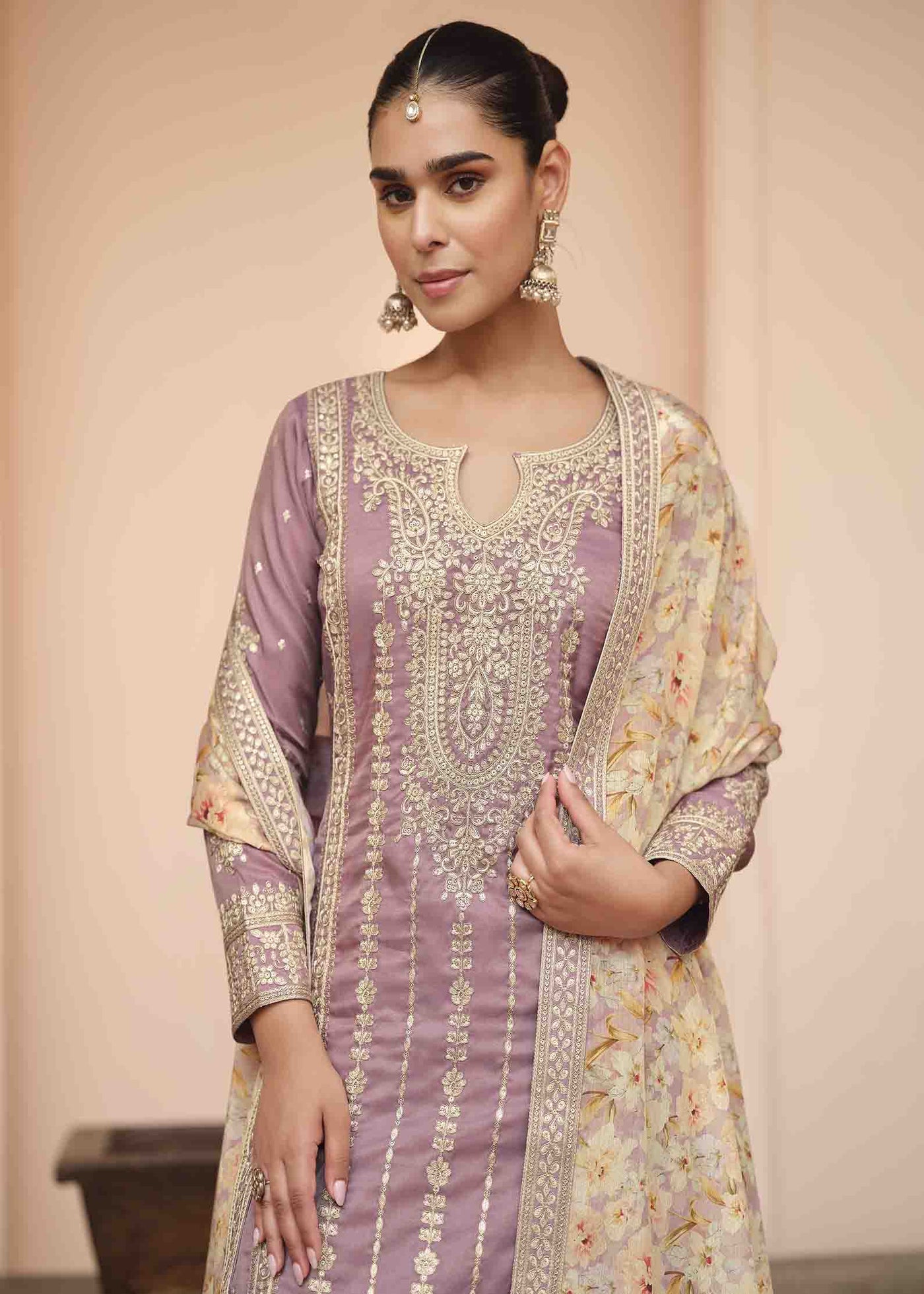 Mauve Lavender Floral Printed Palazzo Suit Sale
