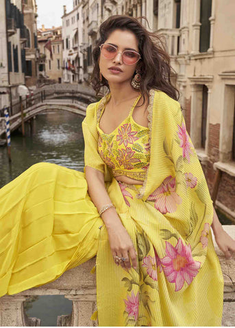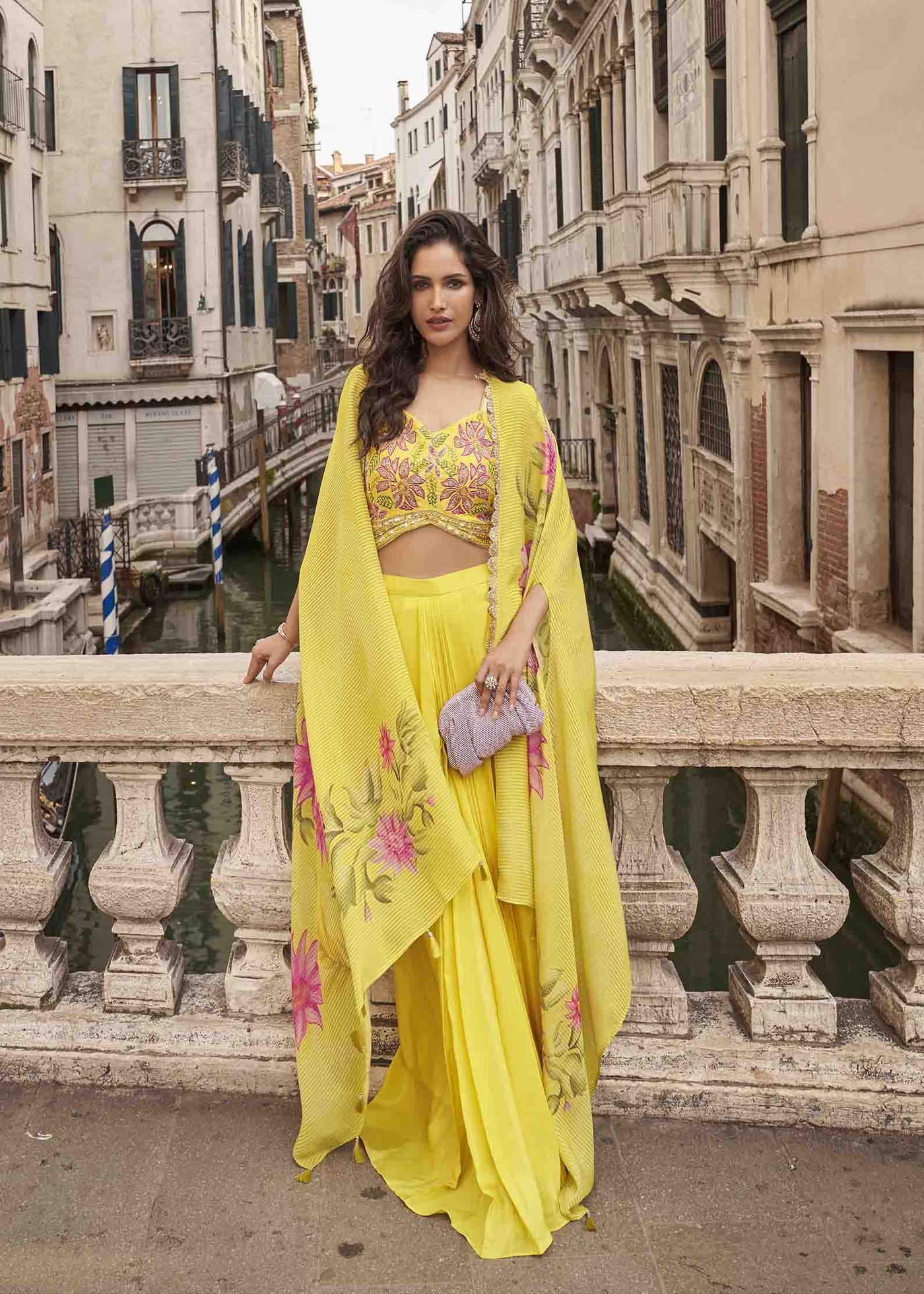 Yellow Jacquard Silk Jacket Style Palazzo Suit Sale
