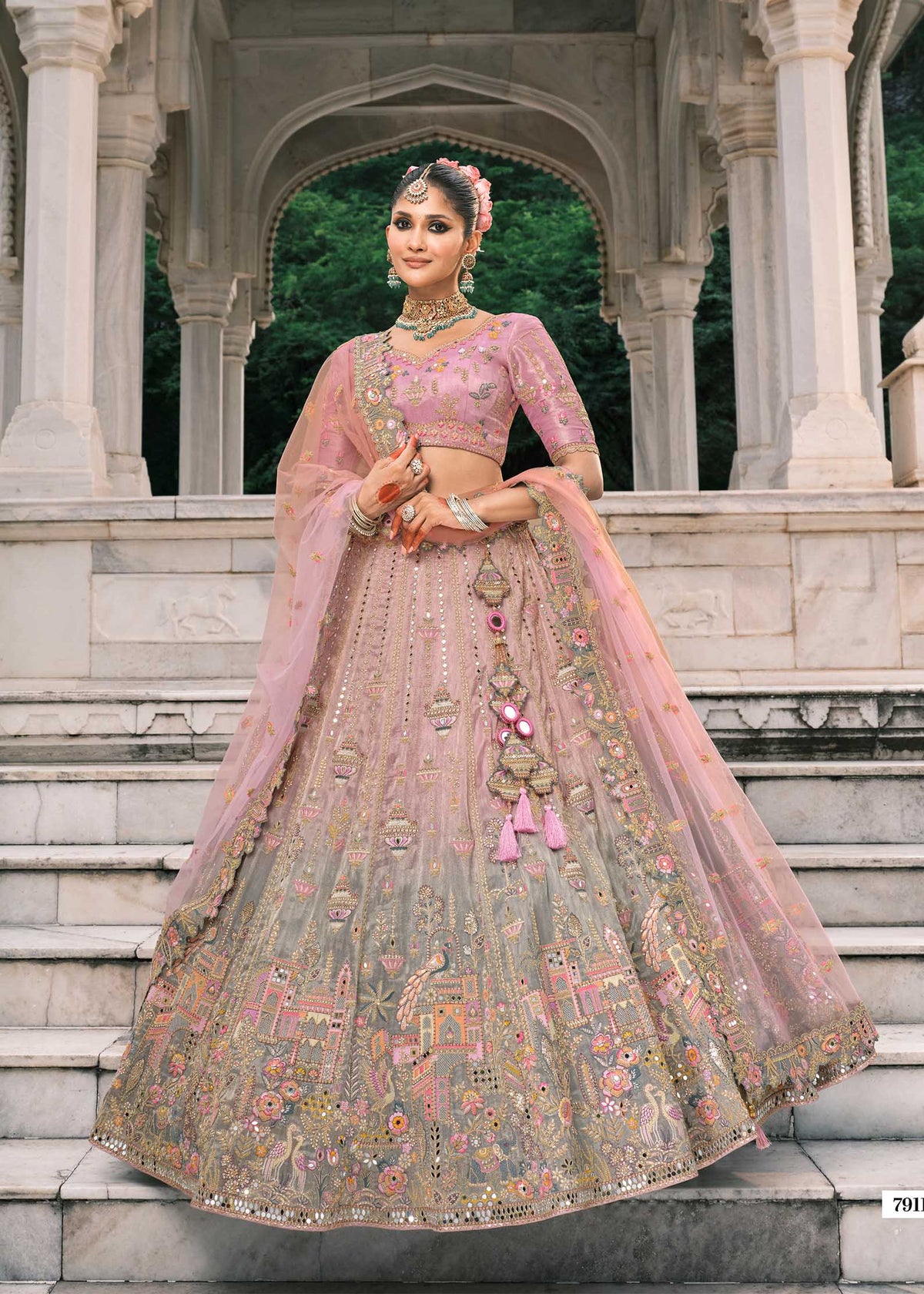 Baby Pink Embroidered Silk Bridal Lehenga Sale