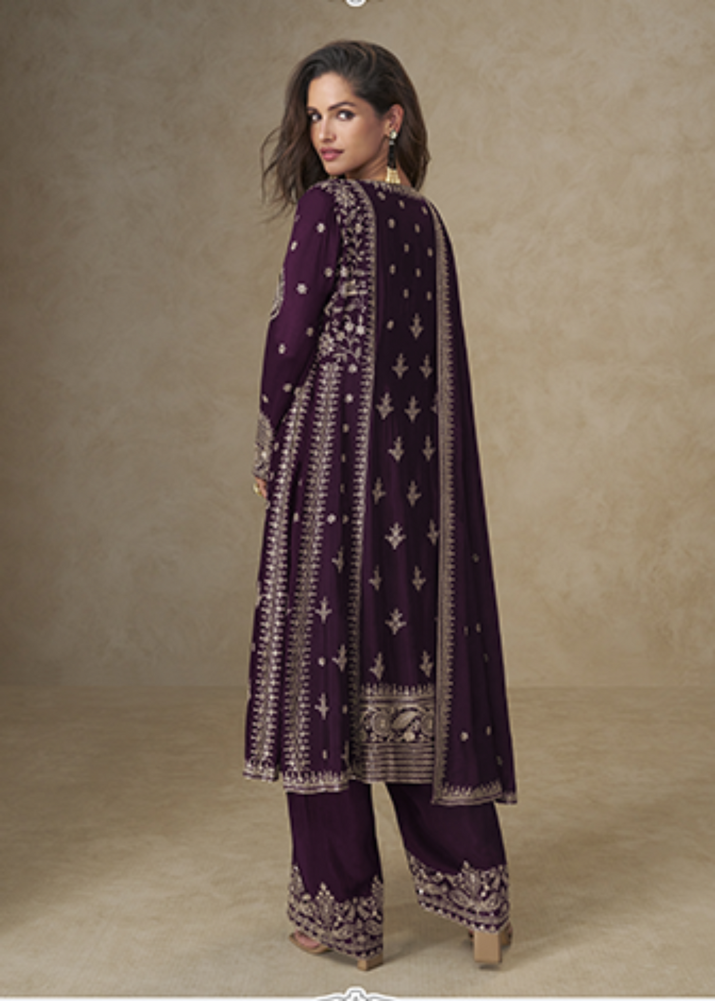 Teal Purple Zari Chinon Silk Suit Sale