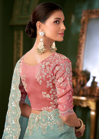Sky Blue Georgette Silk Saree – a refreshing, elegant, and effortlessly charming drape crafted for women who love serene tones with a touch of festive refinement. The soft sky blue shade blends beautifully with the smooth, fluid fall of georgette silk, creating a light, graceful silhouette. Enhanced with delicate embroidery and subtle zari work, this saree offers a polished and radiant look perfect for daytime functions, festive events, and traditional celebrations.