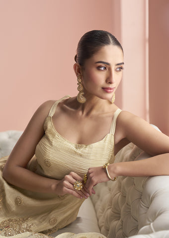 Cream Chinon Silk Embroidered Gharara Suit Sale