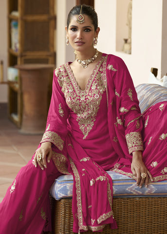 Pink Chinon Silk Gharara Suit Sale