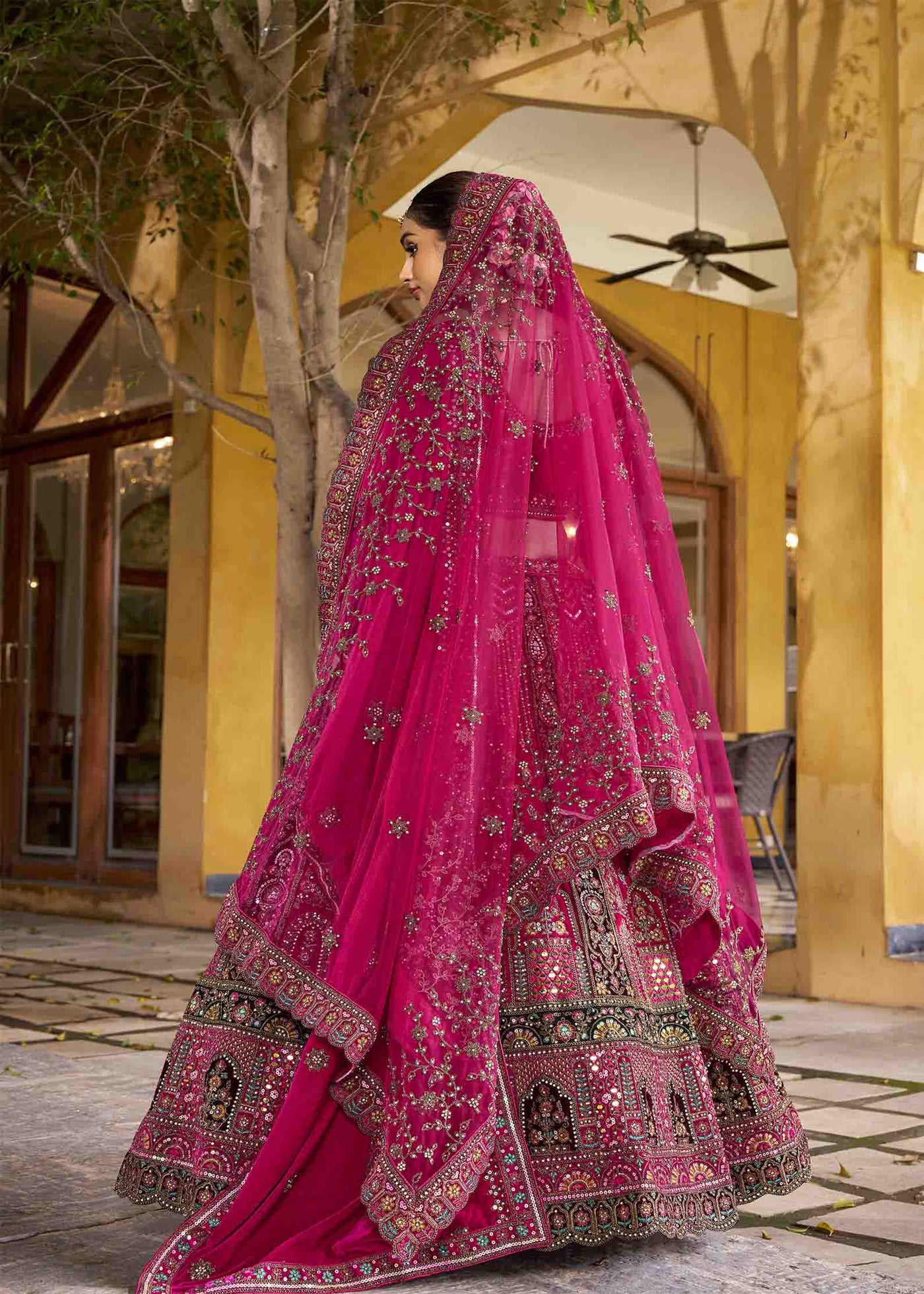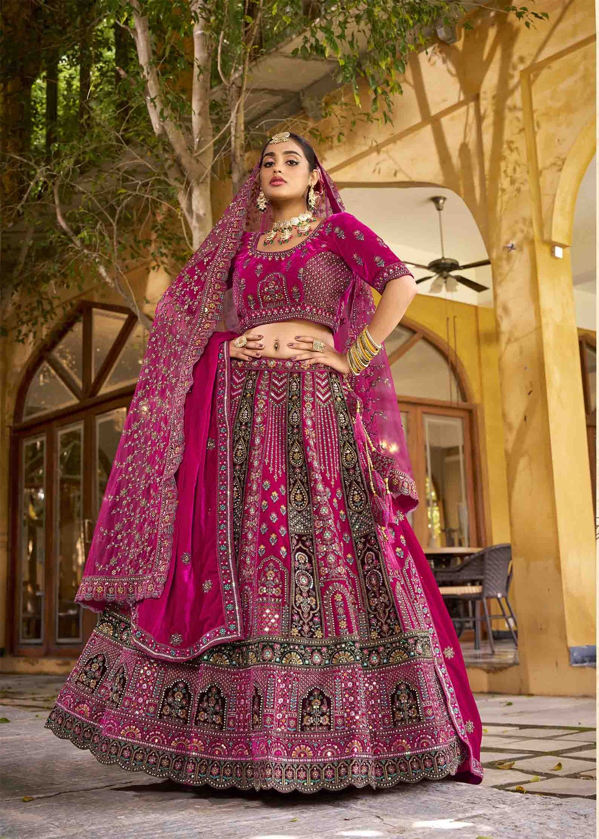 Dark Pink Magnificent Embroidered Traditional Bridal Lehenga Sale