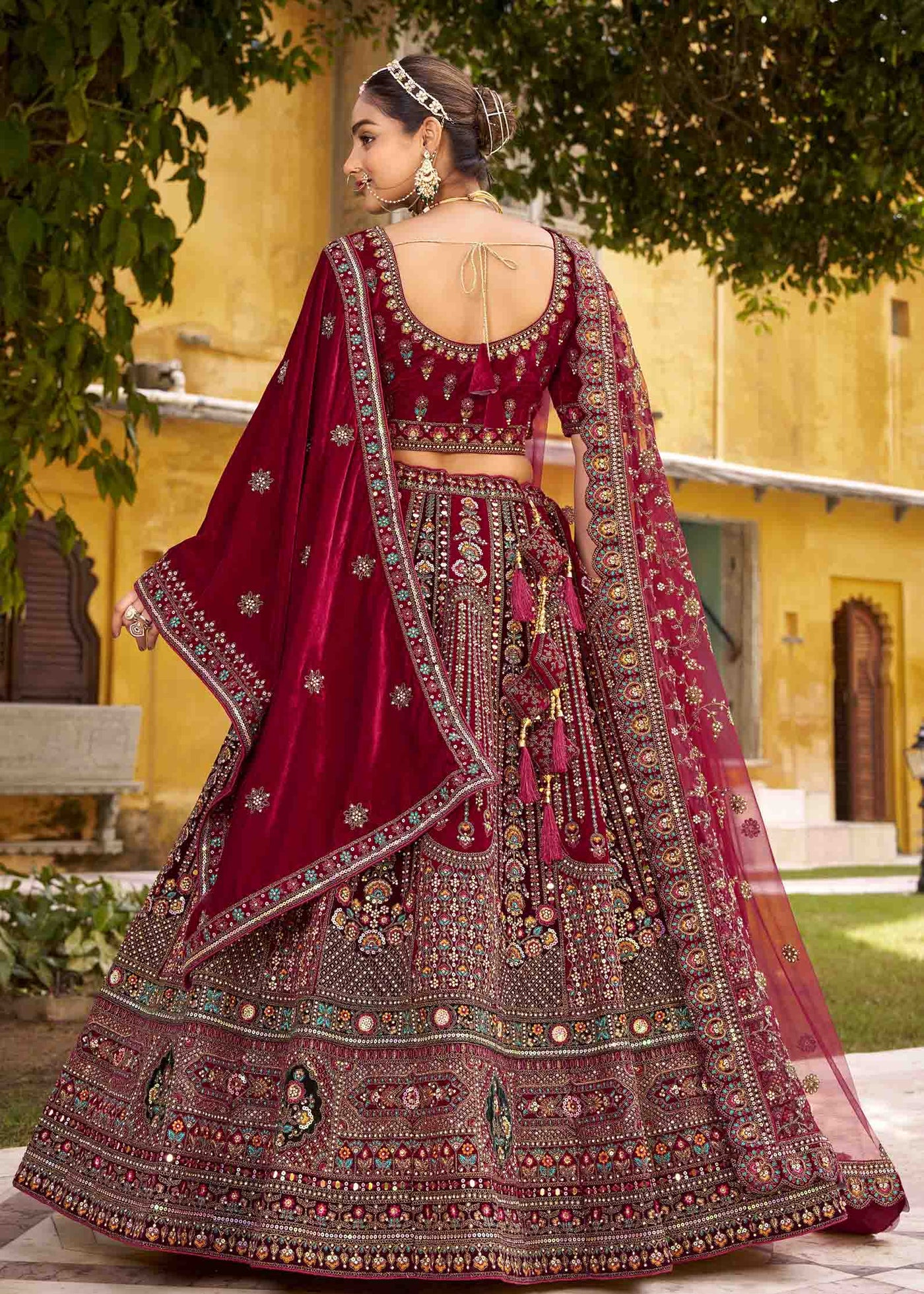 Maroon Magnificent Embroidered Traditional Bridal Lehenga Sale